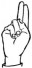 На ћирилици написано ДОБРИЈА ШКРЕБИЋ састоји се из 14 слова [?]. Исписано ћириличном једноручном азбуком за глувонеме: